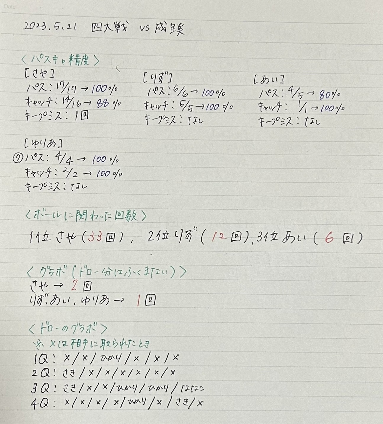 実は自分が1年生だった時に“4年生になったらやりたいことリスト”に「毎日の練習のパスキャ精度を送る」と書いていた記憶があります。